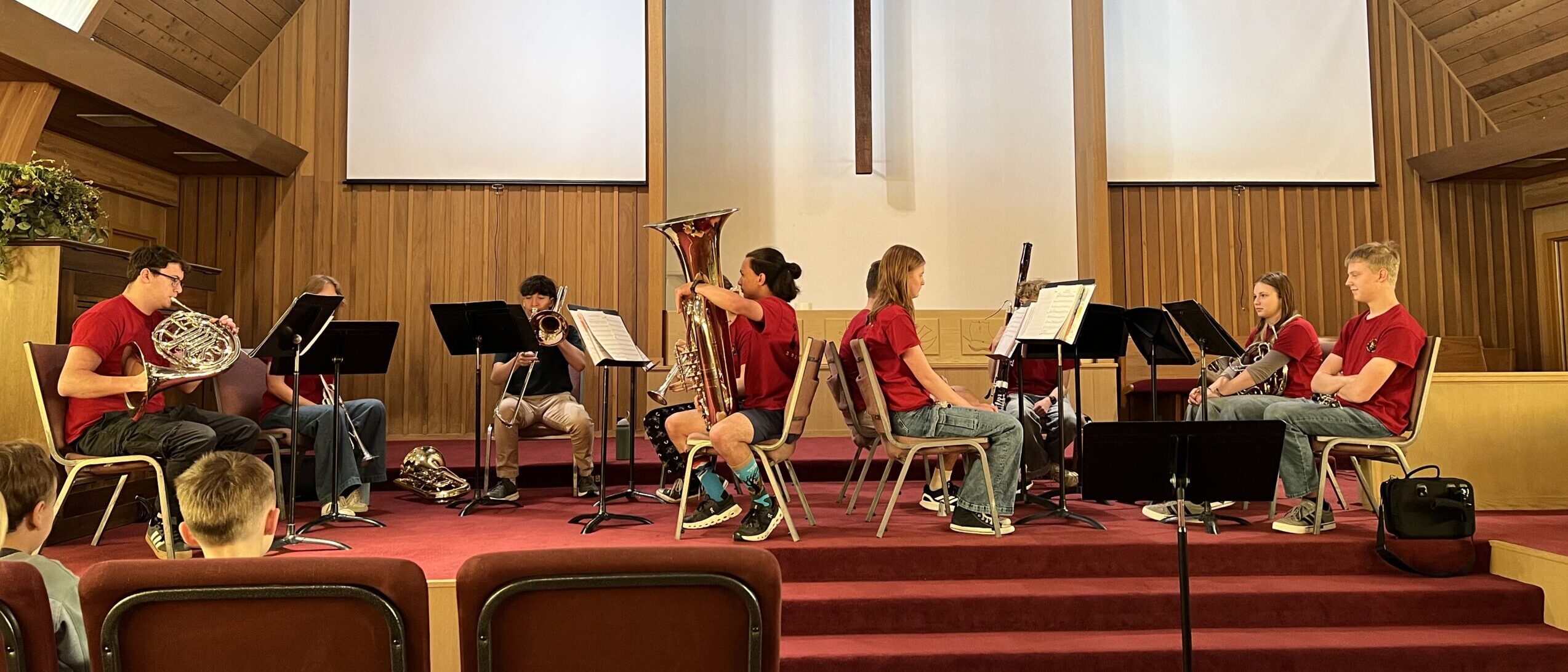 Rocky Mountain High School Band Students from two quintets performed for our preschool. There was a woodwind and a brass quintet. The children had fun guessing the songs performed and they even taught our students about each instrument.
